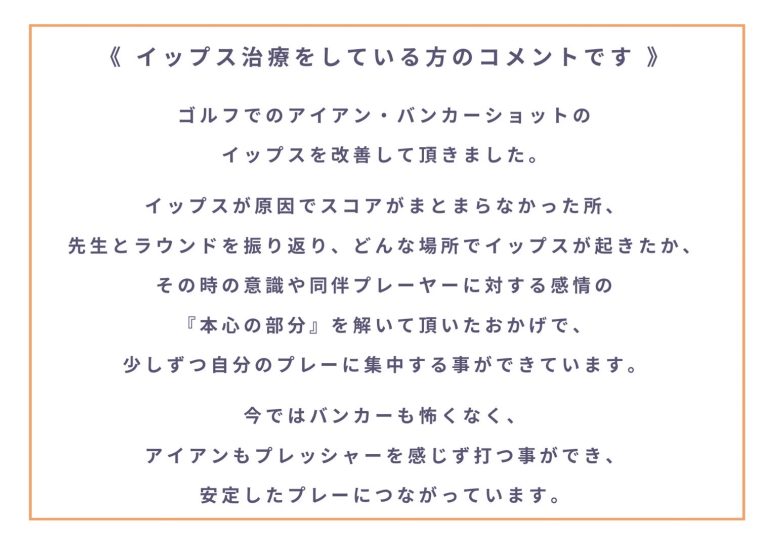 ゴルフでのアイアン・バンカーショットのイップスを改善していただきました。