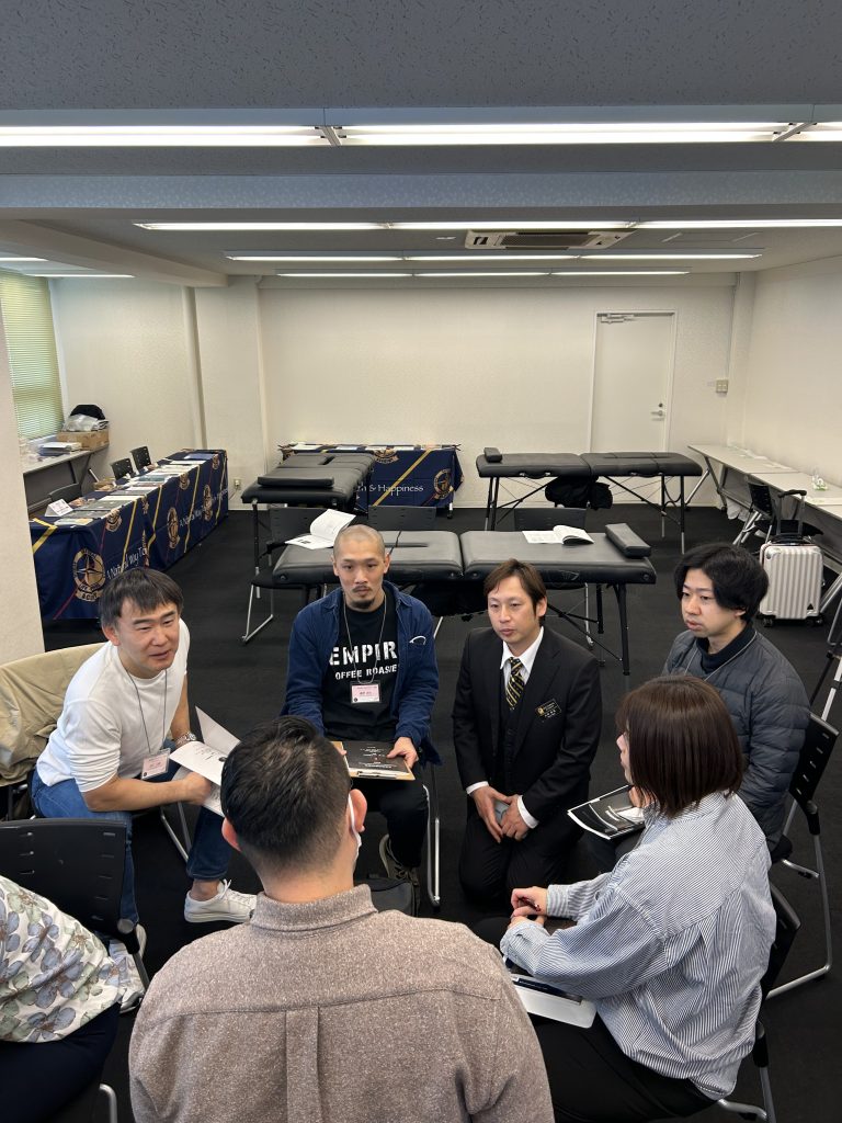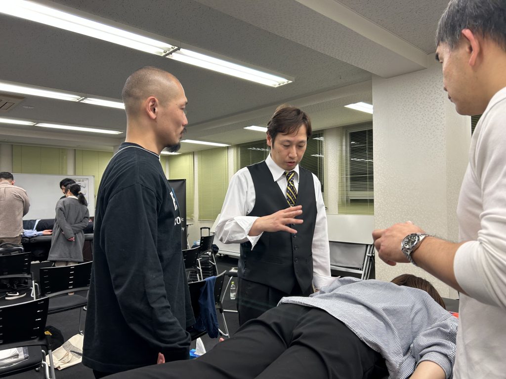 セミナーでは、実際の治療のデモンストレーションや、参加者同士の実技練習が行われました。グループに分かれて、それぞれの治療に対するフィードバックを交わしながら、技術の向上を目指します。
